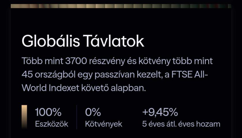 - Globális Távlatok (€VWCE): A klasszikus „vegyük meg az egész világot” megközelítés. Széleskörű globális részvénykitettség több ezer vállalaton keresztül a legendás Vanguard FTSE All-World ETF segítségével.