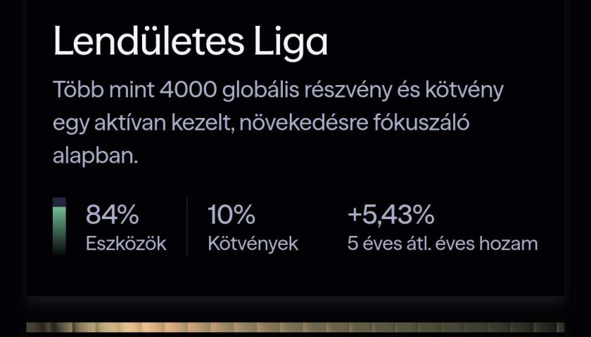 - Lendületes Liga (€MAGR): Ha jobban bírod a kockázatot és hosszabb távban gondolkodsz, ez a Mix magasabb részvénykoncentrációt kínál a Mérsékelthez képest. Mögöttes eszköze az iShares Growth Portfolio ETF.