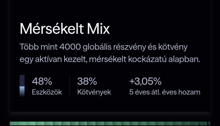 - Mérsékelt Mix (€MODR): Egy stabilabb, alacsonyabb kockázatú opció, amely részvények és kötvények keverékéből áll. A mögöttes eszköz az iShares Moderate Portfolio ETF.